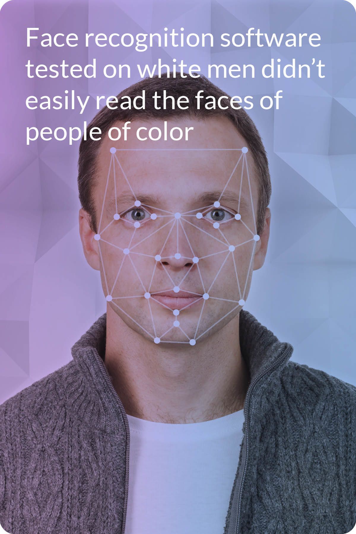 For example, the face recognition software tested on white men — software that didn’t easily read the faces of people of color because the product hadn’t been designed with them in mind.